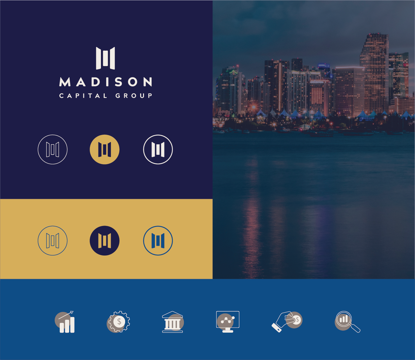 We redesigned the logo with a cleaner, more modern look and developed a full brand style guide to carry the identity across all applications. This included a refined color palette, new typography, and supporting iconography — giving Madison Capital a professional, consistent visual system that matches their reputation in the market.