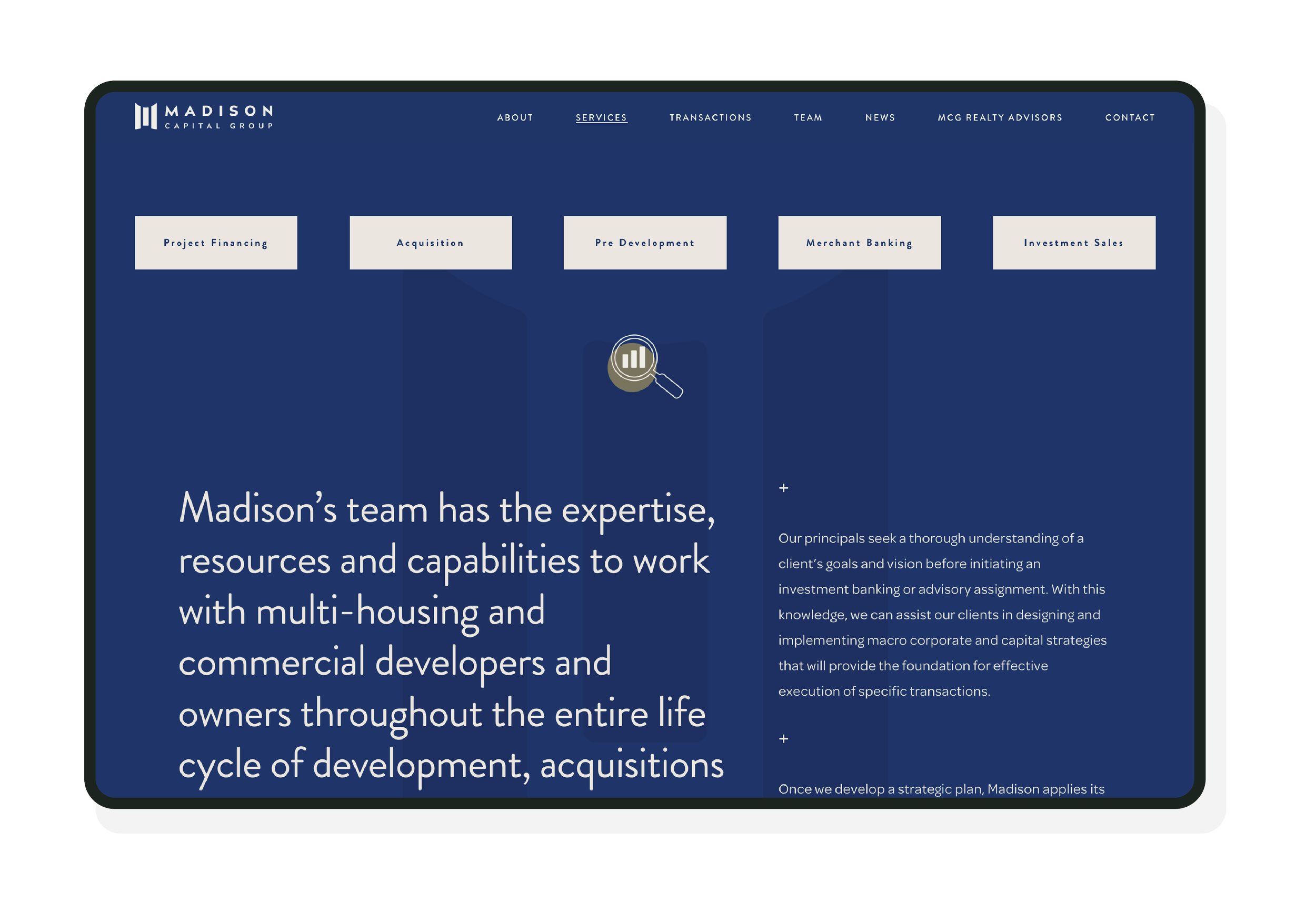 Madison Capital Group’s previous digital presence didn’t reflect the scale or sophistication of their platform. It was dated, sparse, and failed to capture the breadth of the firm’s investment and advisory capabilities.