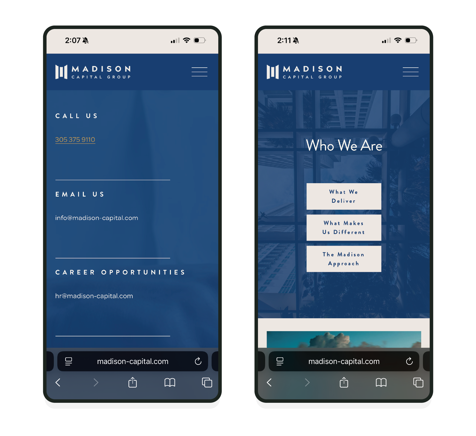 The result is a digital presence that feels polished, professional, and aligned with the caliber of Madison’s work.