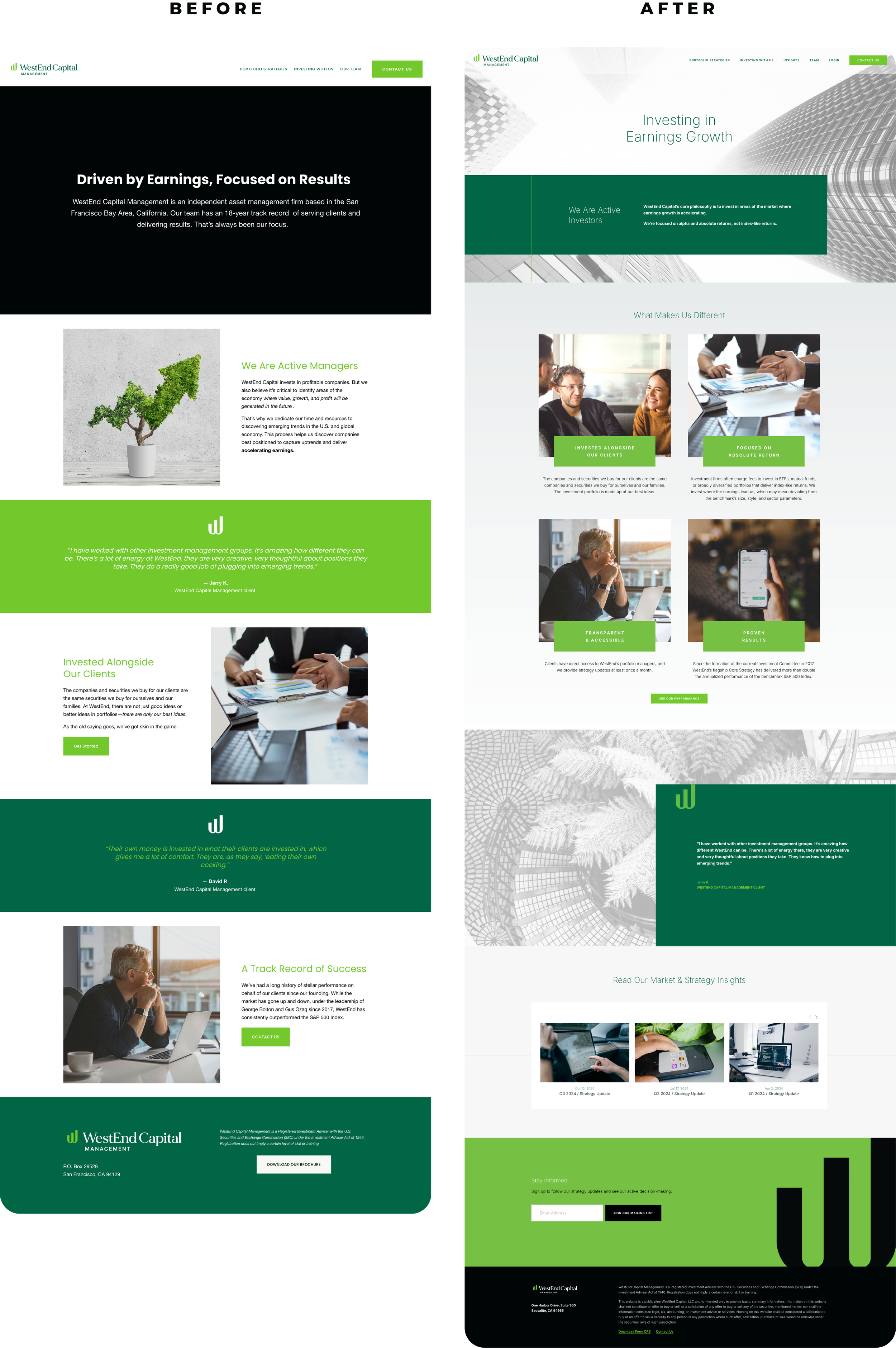WestEnd Capital’s previous website had the look and feel of a standard advisor template — image blocks, generic copy, and little to differentiate the firm. For a manager with a distinct strategy and strong performance, the site wasn’t telling the right story.